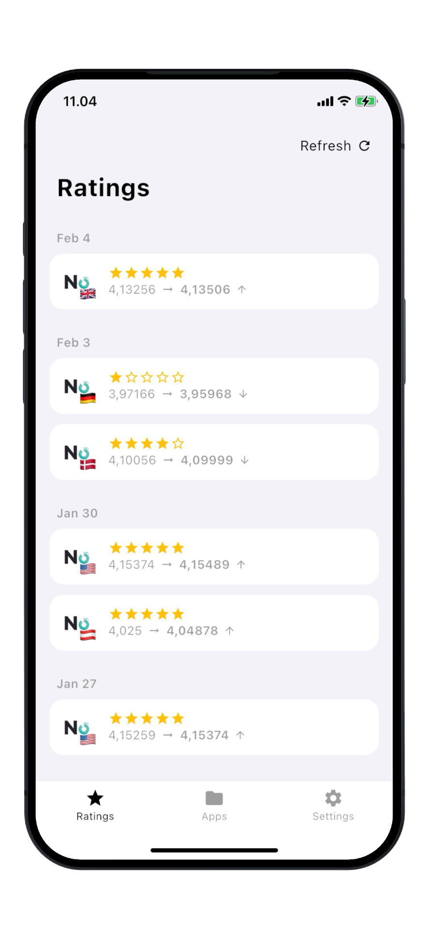 Clearli helps you monitor App Store ratings across the countries that matter to you — including ratings without written reviews.